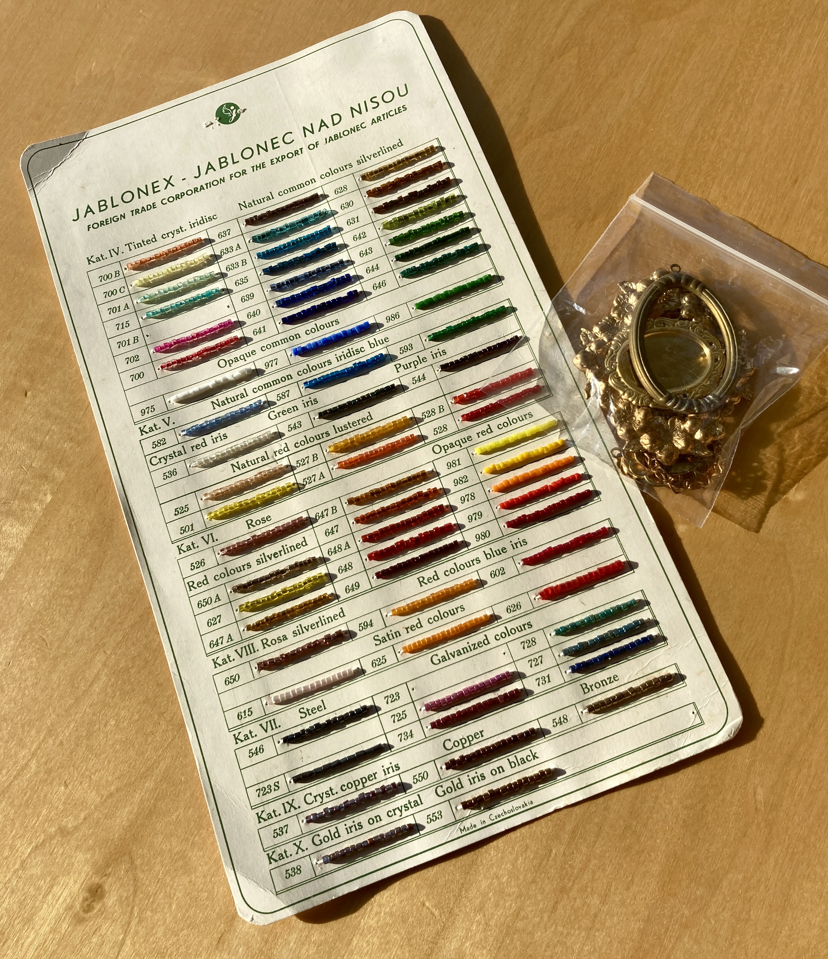 Finally two sets of real treasures. I had a lovely chat with @suziesharpvintage on her amazing stand, and was sorely tempted to spend a lot – I resisted and came away with some vintage metal stampings and a Jablonex sample card but she does sell online so my resistance may not last. Some of you know I visited Jablonec in the Czech Republic last year, almost bought a vintage sample book on our visit to a vintage seller in the former Jablonex HQ pictured below. I didn’t buy it and then regretted that decision almost instantly – now at least I have a card (which is probably more sensible than a whole book), and it’s even an official Jablonex export card so maybe from the Palace anyway!?