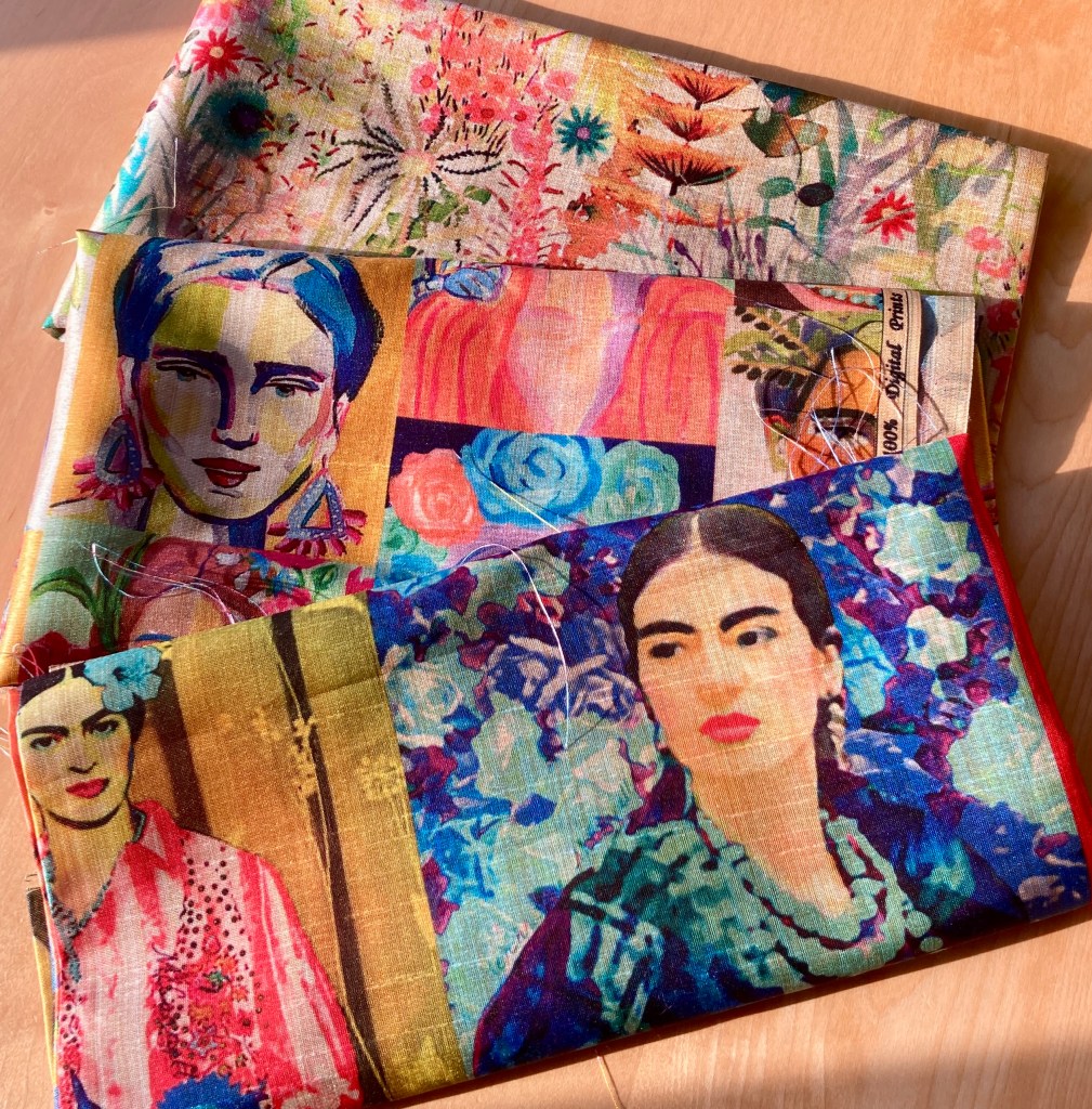 Rosenberg & Son have long been show legends, and they’re now known as Stitch Fabric – these three pieces are a bamboo mix (they said rayon/bamboo but I think there is some polyester in there too – the finish is what my grandmother would have called an ‘art silk’ or artificial silk. Whilst it’s a bit shiny to wear, it’s very eye-catching, particularly the Frieda Kahlo and plan to chop it up and embellish each portrait.