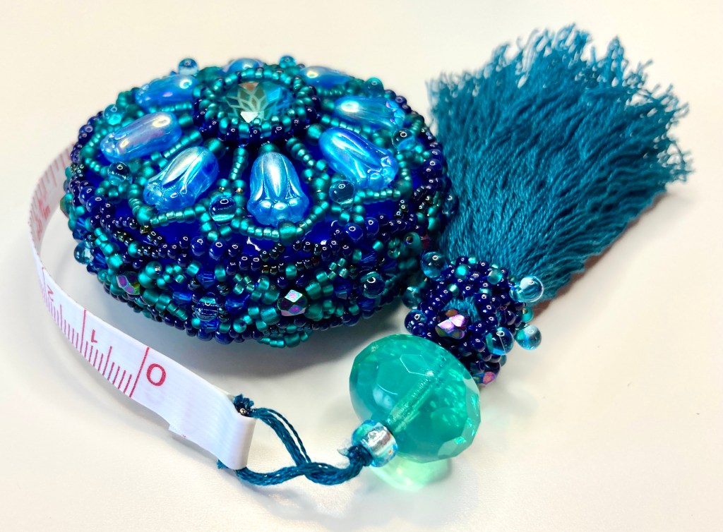 This uses circular peyote, netting and embellishment to transform a simple plastic retractable tape measure into something rather splendid. Will suit intermediate to advanced level beaders who have experience with peyote and netting.