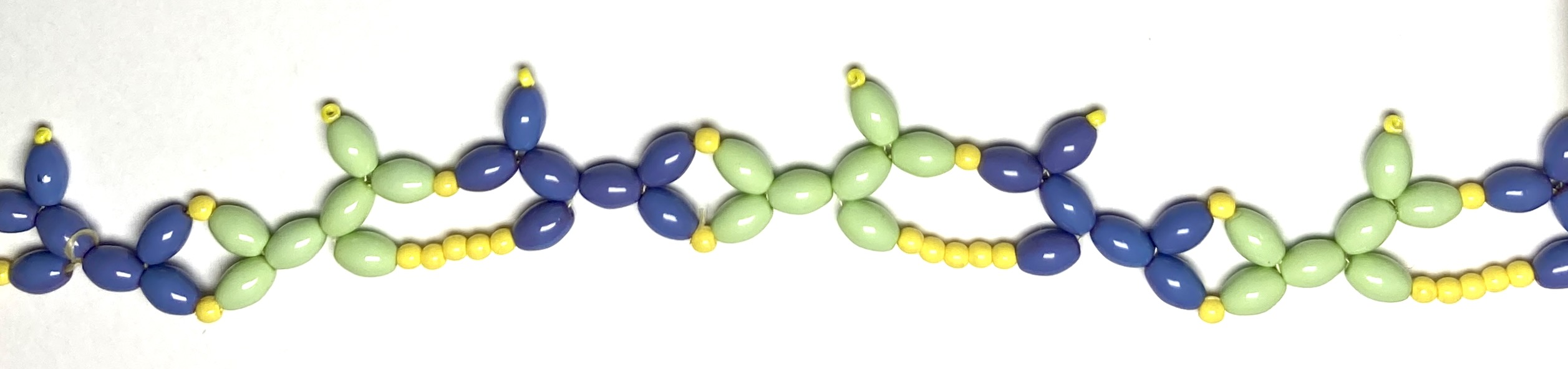 So far fine, but nothing revolutionary. I played around a bit and worked out that other 2 holed beads worked, made a few pretty solid sets with Nib Bits, and even started playing with 4 holed beads with limited success (I need to go back to that one day). Other beaders were doing way better things with multi-holed beads and geometric builds and my efforts were cute but not really clever enough on their own compared to work being done by others, so I put them away.