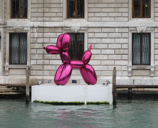 All celebrations need balloons, and the very best balloons are those fabulous sculptures made by twisting and shaping long thin balloons. The most glorious of these is undoubtedly the simple Balloon Doggy. Even Jeff Koons makes art from them – you can see one we spotted on the Grand Canal in Venice below, so this year I thought I’d try to make some in beads. Once I’d made an individual one for fun I started to see that they could be linked together to form a chain of doggies. Additional links to mirrored pairs stabilise the weave, and give you a whole pack of doggies to play with.