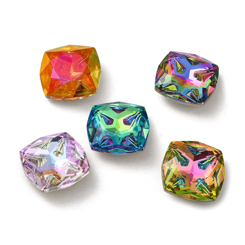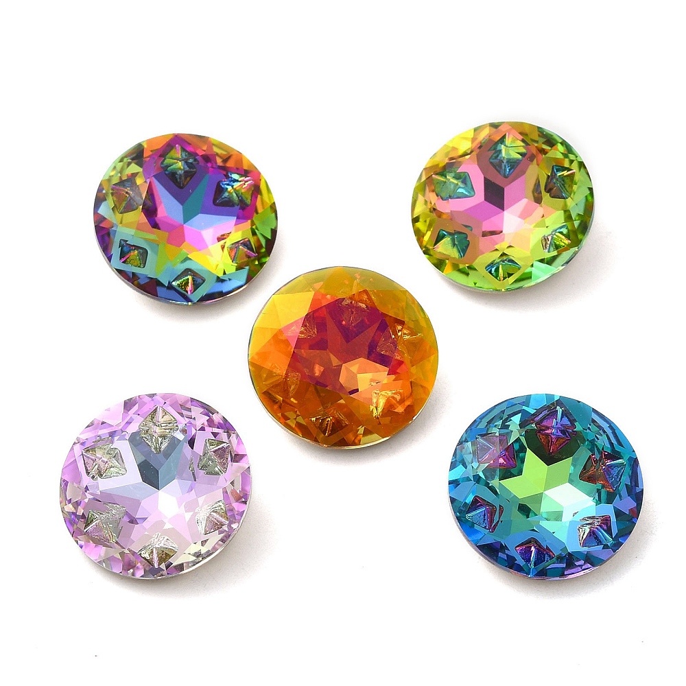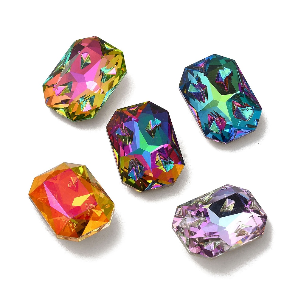 The second set are on first glance more conventional – in all the standard brightest crystal finishes (like Astral Pink or my favourite Vitrail Rose), and reasonably sensible shapes. Foiled backs, and I’ve gone for the larger sizes rather than any teeny ones as those tend to work better for beadweavers. But they have these really odd little reverse faceted dents in the back, almost like darts in dressmaking, and these seem to really up the sparkle, and importantly for me, they also introduce new surface directions so more colours show at once in the crystal, which plays really well to these extravagant coatings.
