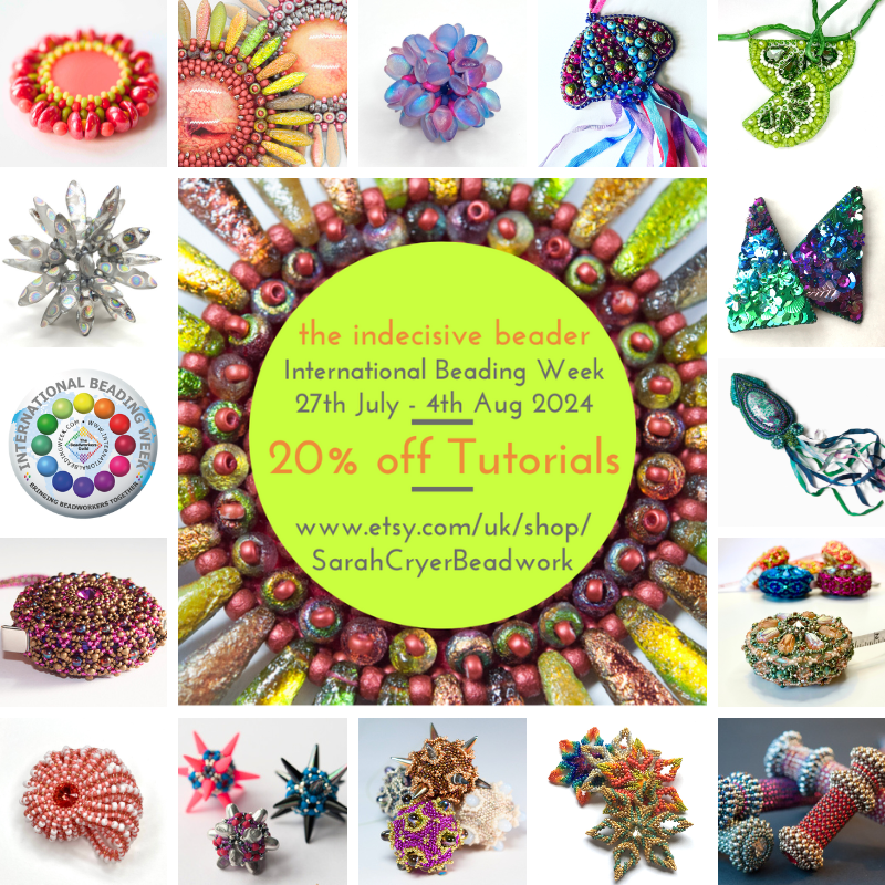 In addition, every year I try to offer a discount in my shops – this year I’m offering 20% off all tutorials in my Etsy and Payhip shops, and I may run some other offers on beads, crystals and other items during the week if time permits. The offers will run for the whole of IBW (which is actually 9 days, not 7) – so 27th July to 4th August. This is pretty much my main ‘sale’ of the year and the only time I offer this level of discount, so don’t miss out. Please note the discount will not start until the 27th (but don’t worry, tutorials don’t sell out!!).