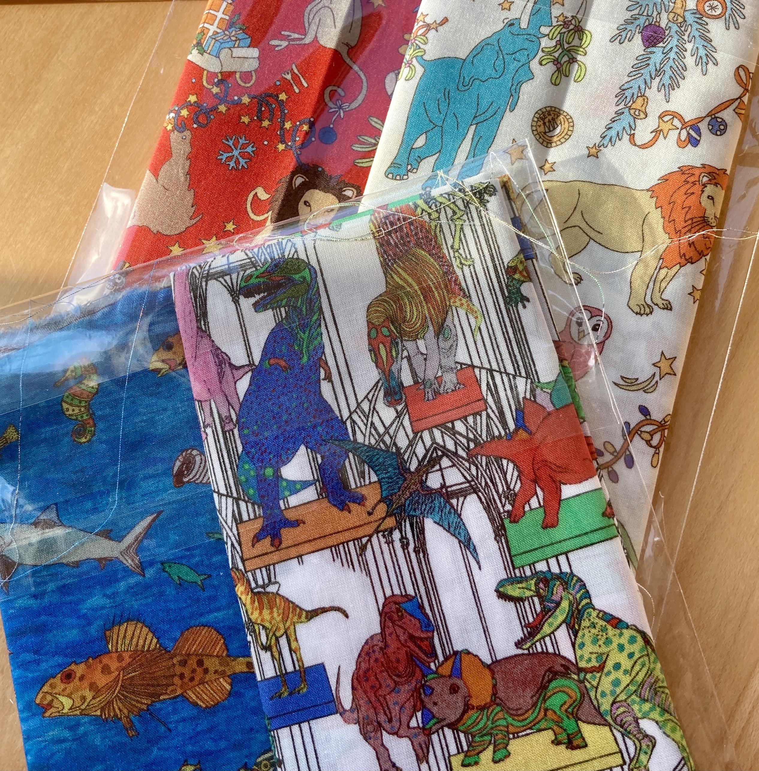 I nearly succumbed to some Liberty needlecord from SewBox, but resisted and just grabbed a couple of teeny Tana Lawn packs – look at those DINOSAURS!!!