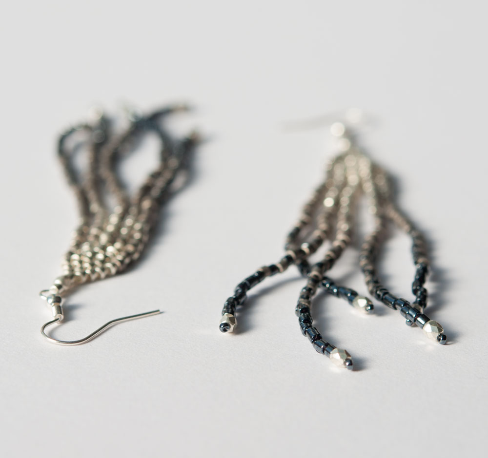 Previous Image Next Image Parrot Feather Earrings – The Indecisive Beader Parrot Feather Earrings – Silver to Gunmetal Parrot Feather Earrings – The Indecisive Beader