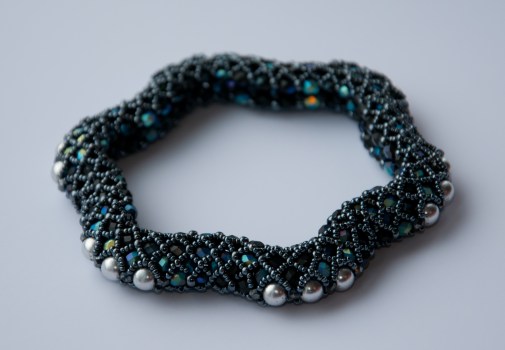 Previous Image Next Image Scheherezade Bracelet – Black AB & gunmetal Scheherezade Bracelet – Sabine Lippert (beaded by Sarah Cryer) From Beaded Fantasies (Lark Books)
