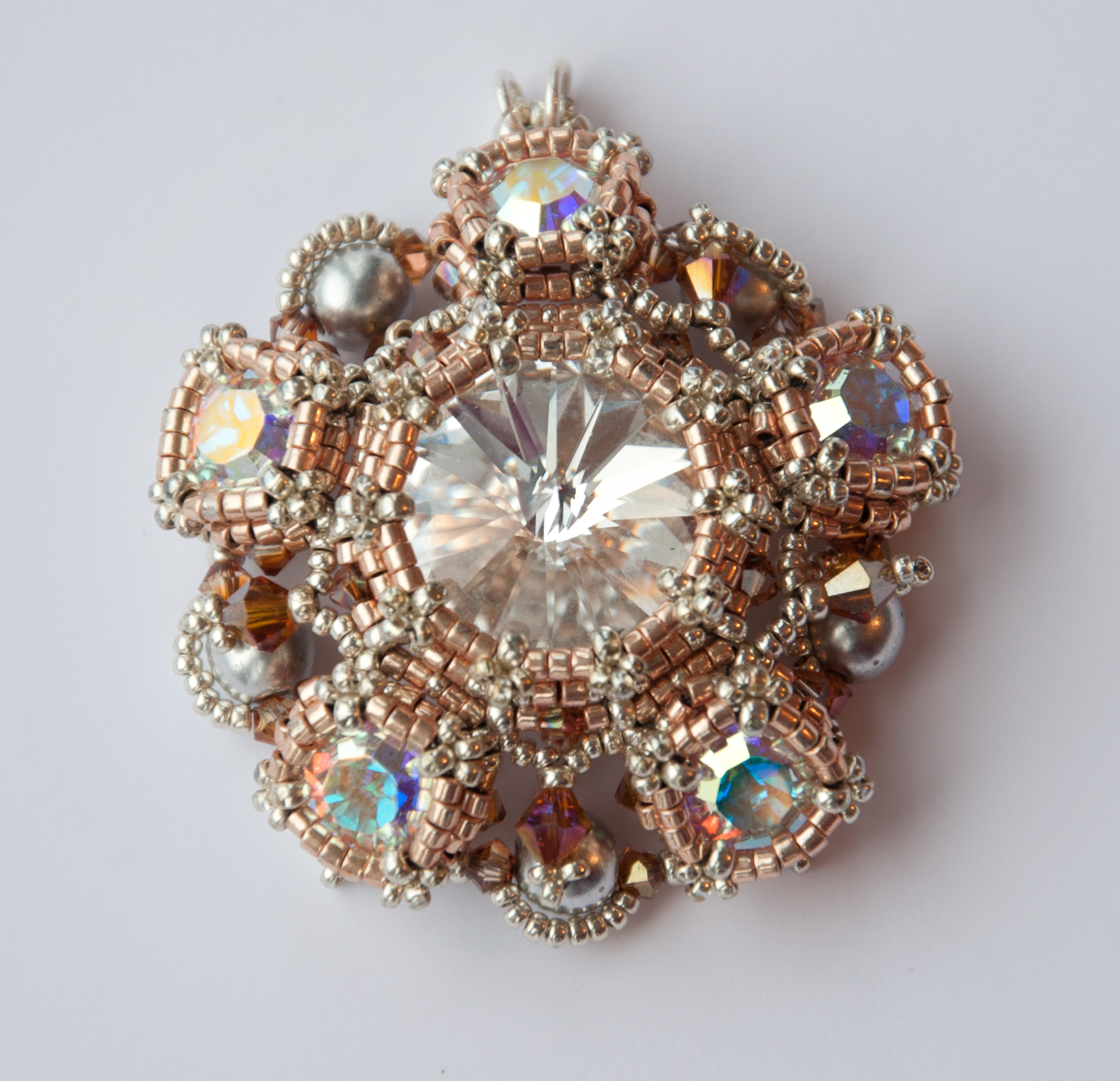 Previous Image Next Image Amazon Jewel Pendant – Rose Gold & Crystal Amazon Pendant – Sabine Lippert (beaded by Sarah Cryer) From Beaded Fantasies (Lark Books)