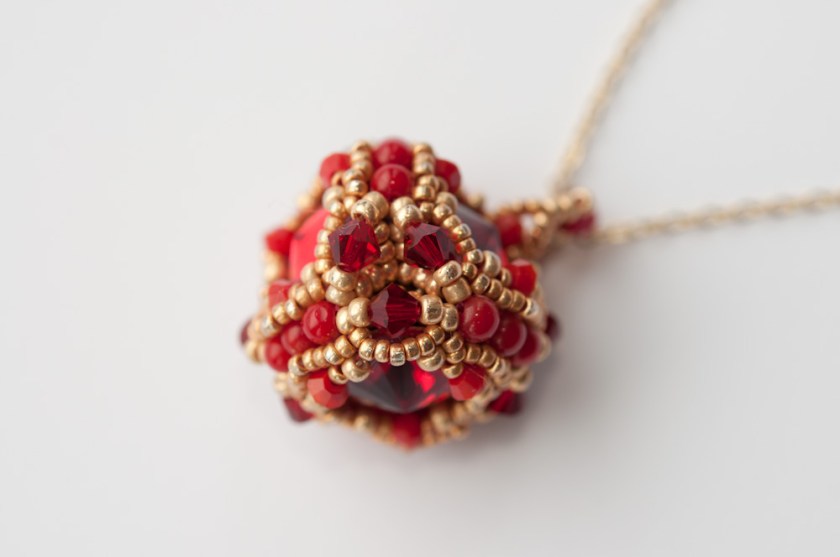 Previous Image Next Image Baroque Pendant Baroque Pendant Red rivolis surrounded by red coral, crystals and miuyki seed beads