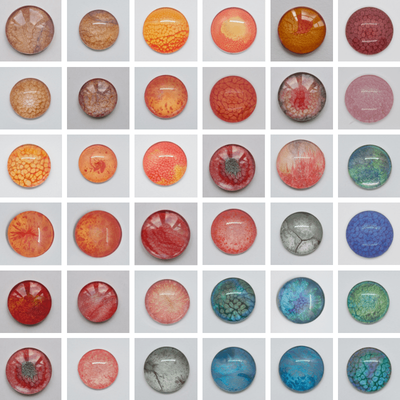 I offer hand painted Pebeo paint, acrylic ink and Liberty Tana Lawn cabochons, sold singly or as sets. I’m happy to make a unique set for you for a project, so please contact me to discuss options.