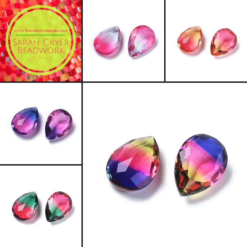 These crystals are great – I try to pick and try ranges that offer something different to the standard selections – perhaps a different shape or unusual finish. Whilst they’re not of the same quality as top brands of European crystal, neither are they anything like as expensive, and they offer something different in terms of unusual colours, shapes and finishes. To avoid quality issues each stone is individually checked and packed carefully by me, so you can be assured that any of the chipped or scratched ones you sometimes see in Chinese crystal packs have been weeded out and won’t be sent to you (although you may see them with the damage carefully disguised in my own work – don’t want to waste any after all!).