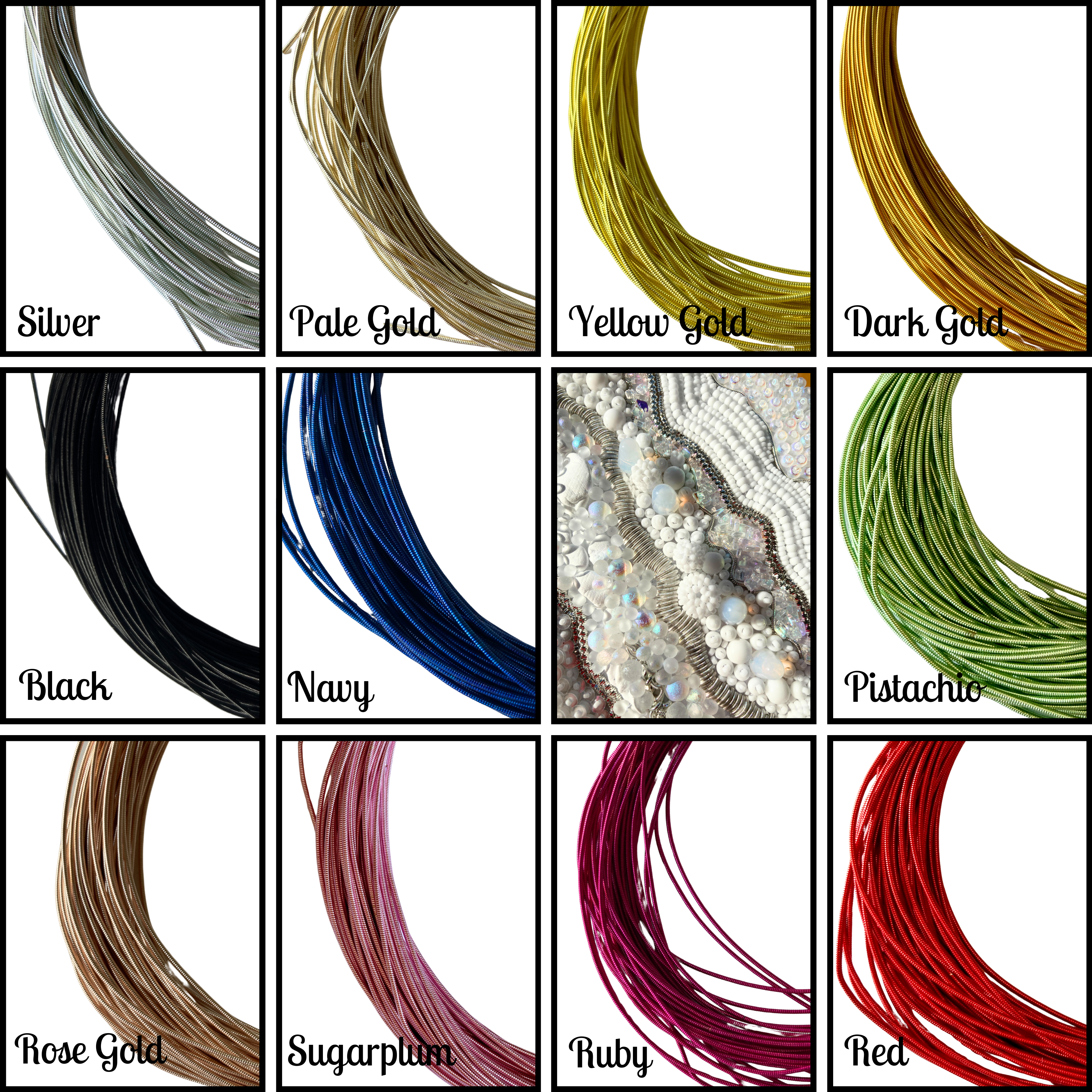 I sell a small range of high quality Indian goldwork wires, including 10 in pearl purl and over 40 colours of wonderful 1mm smooth purl – the largest range in the UK. This is sold singly by weight or in colour packs, please again contact me if you’d like to purchase larger quantities or would like a custom pack made for a special project.