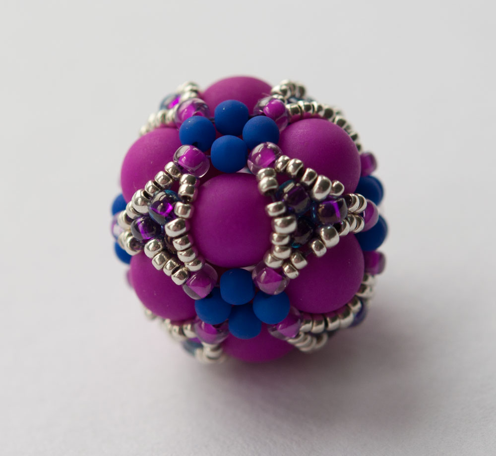 It’s from the April/May 2012 Beadwork Magazine, and is by Gwen Fisher – Cluster Beaded Bead. It’s a super one, goes together really nicely and quickly. I don’t tend to have many 8mm rounds knocking around though, so I will need to order some more if I want to repeat this one.