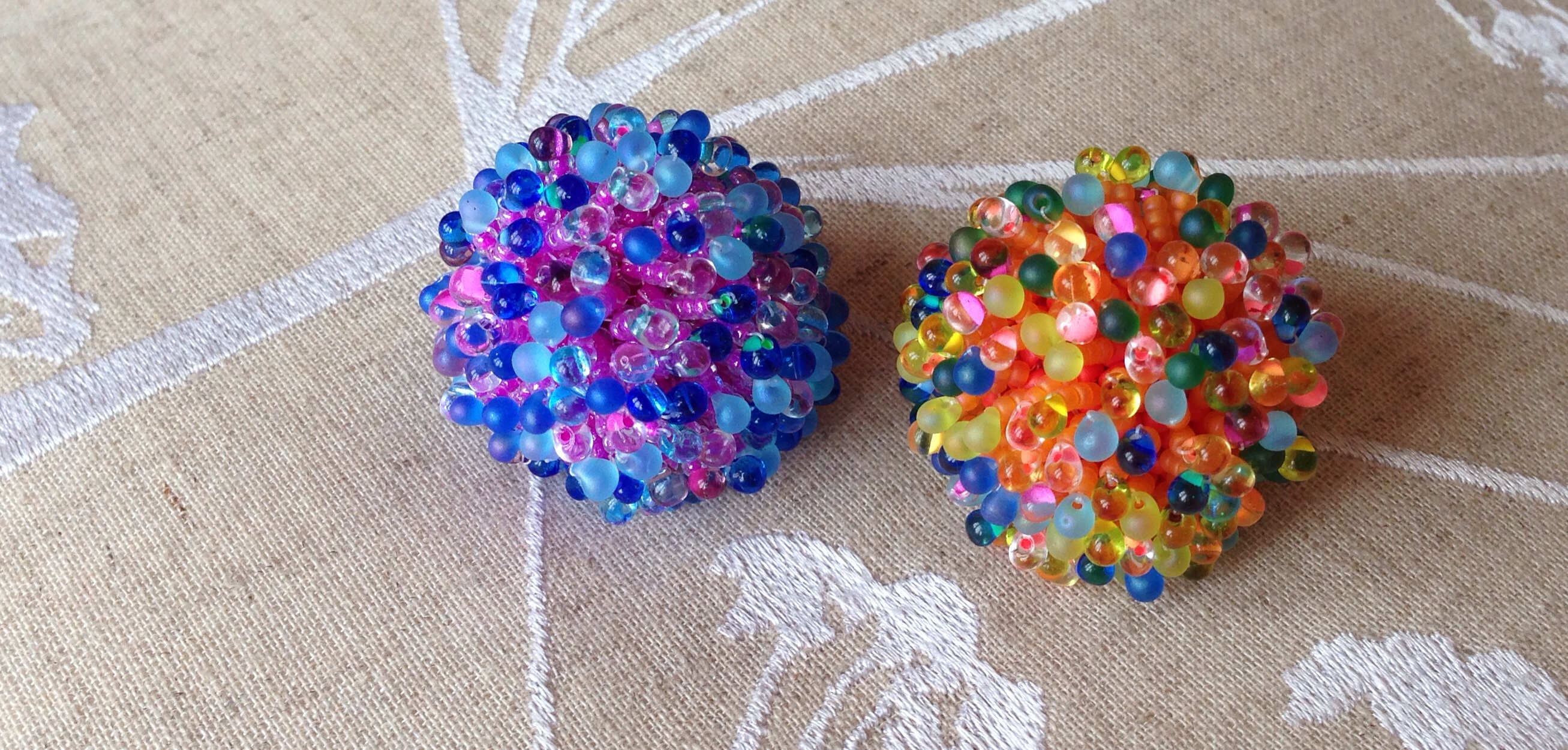 • If you’ve not peyoted onto a base bead before then have a hunt around for a tutorial.  Having tried and failed to do them in the past without a tutorial, a while back I invested in a few different sizes from The Crimson Moon, and having made a few of each size am now comfortable enough with the technique to just go for it.  Sadly Liz isn’t selling her patterns any more, but have a look around Etsy and similar sites and see what you can find – post some recommendations here if you find a good one.   If you can find a tutorial using 8s, even better, as you can use them as a basis for an Anemone beaded – those inevitable gaps and threads in your first few attempts will be hidden by the fringe!