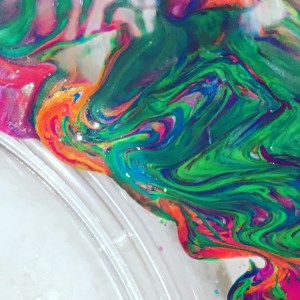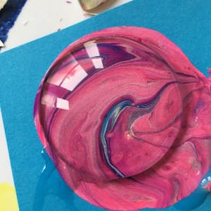 That led immediately to another set using the kid’s paints, doll’s cups, and basic acrylic dirty pour techniques.