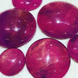 As well as the different patterns formed the acrylics come in a wider range of colours than the Pebeo, and are of course mixable, so I can finally make cabs with some of the colours Pebeo don’t offer such as fuchsia, pure white, black, and lime . Which is good as I use a lot of fuchsia!