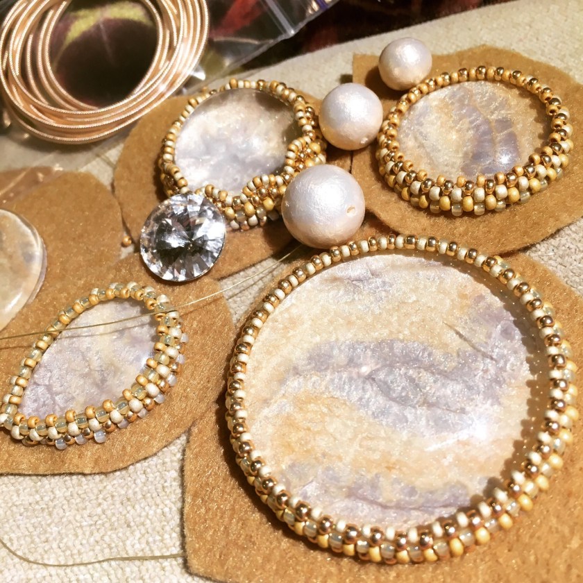 In addition I’ve also introduced some more crystals in settings – these have always been popular with bead embroiderers, and we’re now seeing them more and more in beadweaving too, thanks to beaders like Pikapolina and Erika Sandor. This particular size (18x13mm) and shape (pear) was requested by a customer, and as usual I couldn’t pick a range so there are two – both pastels, both summery. Both have a pastel coloured backing rather than being foiled, one with an opaque backing and a shimmer coating, and the other with an opaque but slightly shimmery, glittery backing and no coating. That makes the latter more subtle, and the former more blingy, so once again I have both camps covered!