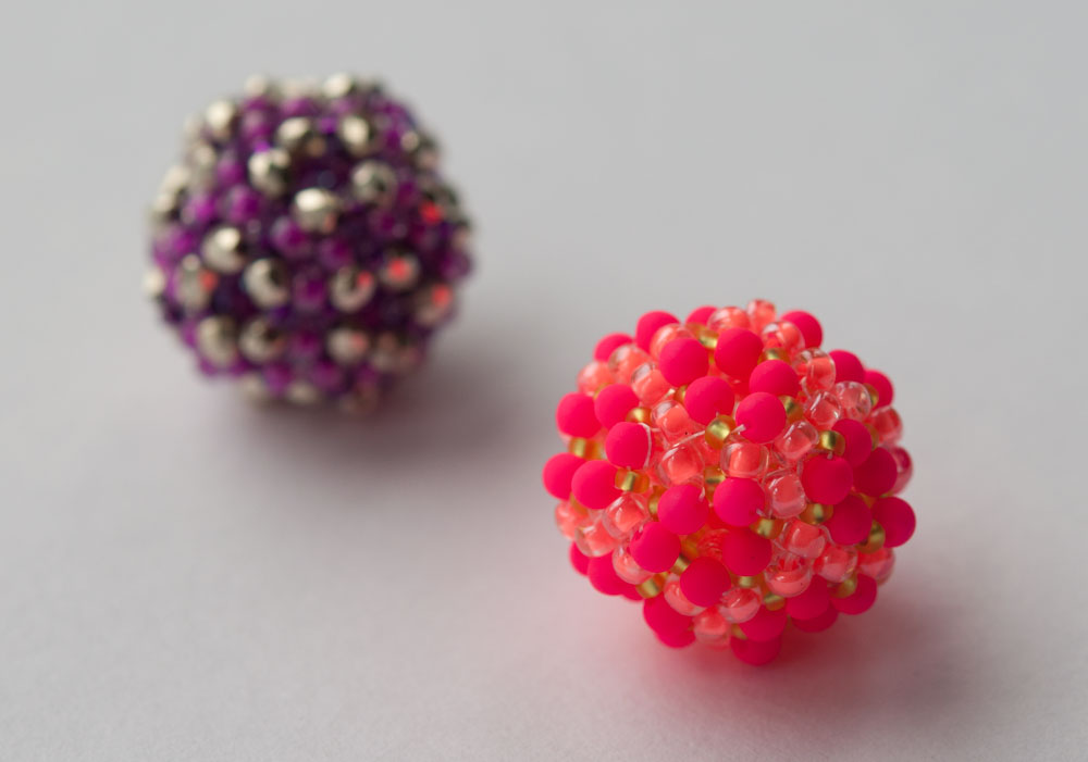 Intermediate level, suitable for anyone who is confident with RAW and Peyote, and patient enough to make 20 identical components and carefully follow a net to join them correctly. As usual it is fully illustrated with both diagrams and photos, written out steps and even some listed out colourways (with bead numbers) or your own colouring in sheets if you’d like to plan your own colours. A full detailed list of bead requirements is available on the usual page here.