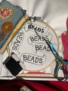So the big lesson today was about getting some balance back – I pared back the black and white elements as far as they could go, and then went wild with the beads. A success!