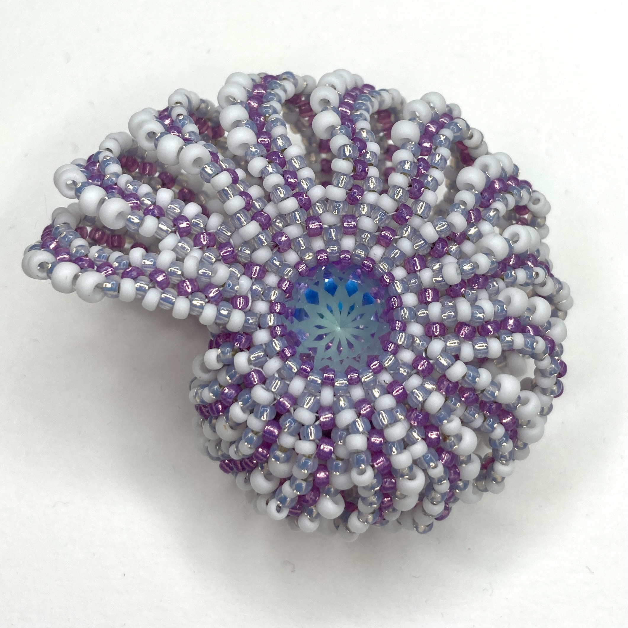 This piece was started last year as an attempt to create a shell shape in beads.